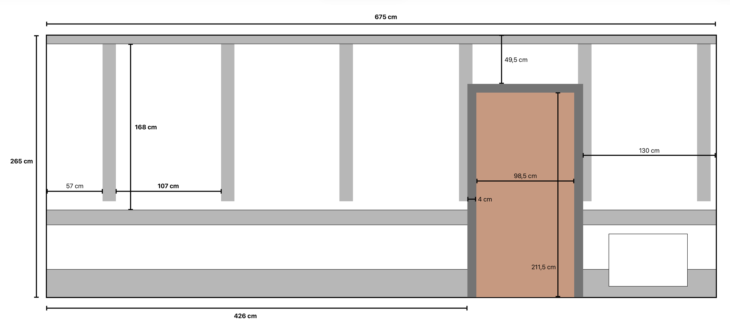 Veggane er magnetiske og tålar maksvekt ?kg. Dei er ubehandla og industrielle, og på langveggen er det 5 felt det er naturleg å forholde seg til under oppheng. Sjå planteikning lenger ned på sida.